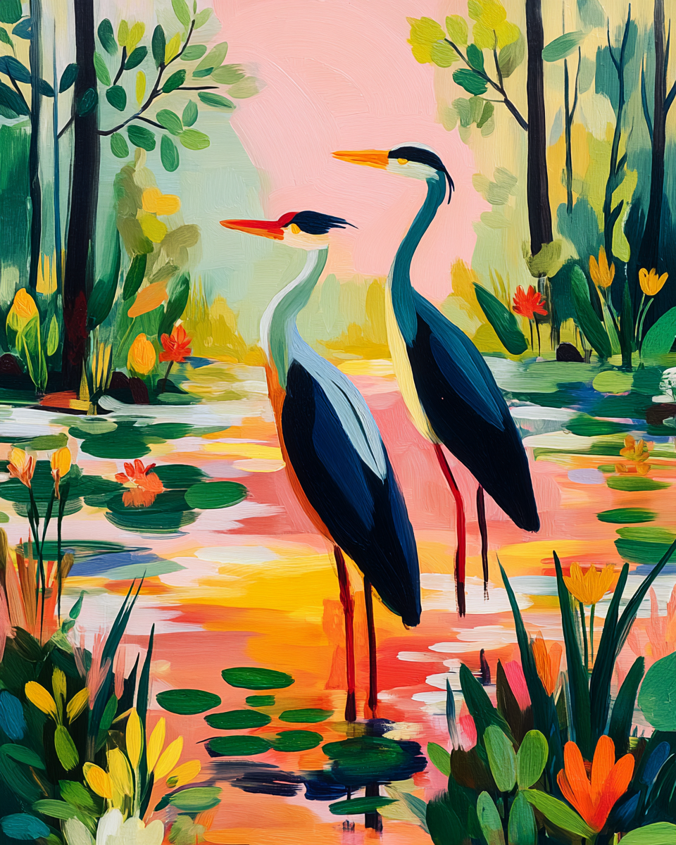 This Spreewald bird print captures cranes in marshland at sunrise with a calm yet striking regional atmosphere. It works beautifully for buyers who want elegant nature wall art with a sense of place and a softer decorative palette. This design is part of the Spreewald series and pairs especially well with canal, cottage, and flying crane companion prints. Best for: bird art collectors, hallway decor, nature gallery walls, cottage interiors, and refined landscape styling. Colors may vary slightly depending on screen settings, but the final print is designed for strong color depth and a refined interior finish.